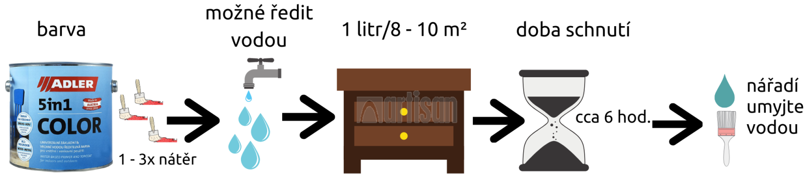 Artisan TIP - Díky univerzálnosti barvy si vystačíte s jedním produktem na mnoho povrchů v celé domácnosti a jiných prostorech.