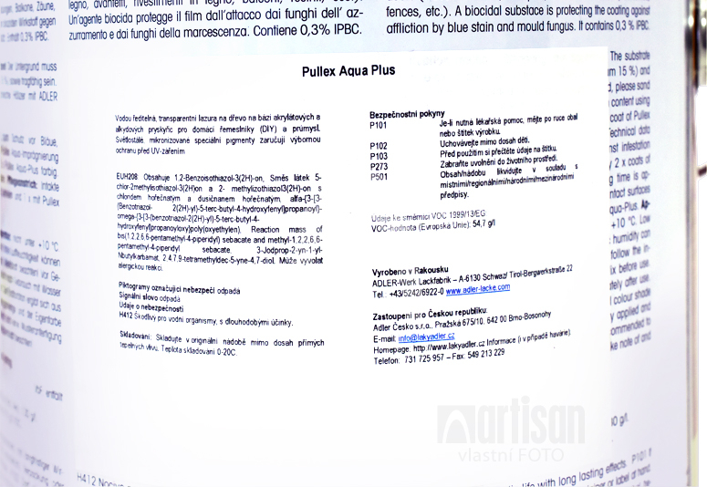 - Pullex Aqua-Plus obsahuje speciální pigmenty, které zaručují výbornou ochranu před UV zářením.