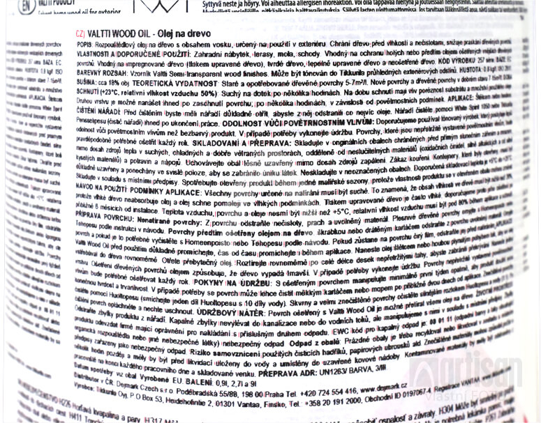 Výsledný vzhled odstínu zjistíte podle zkušebního nátěru. Vše se odvíjí od typu dřeva, jeho povrchu, na způsobu nanášení a počtu aplikovaných vrstev. Ošetření dřevěných povrchů olejem Valtti wood oil způsobuje, že dřevo vypadá tmavší.