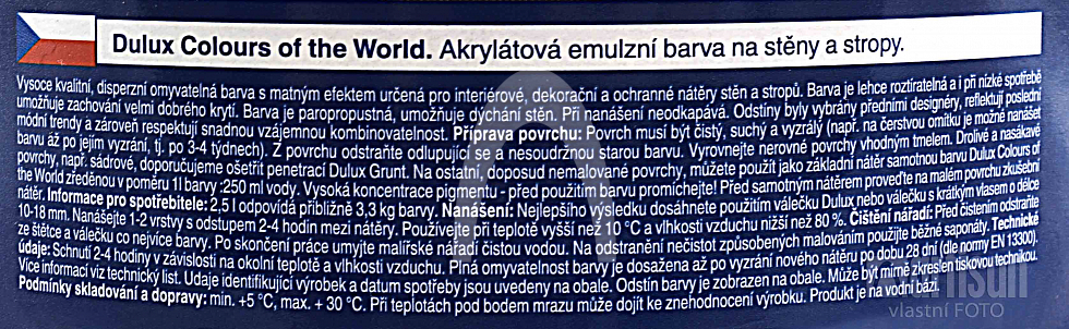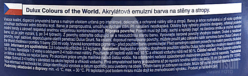 Omyvatelnou barvu DULUX Colours of the World dodáváme v tomto balení