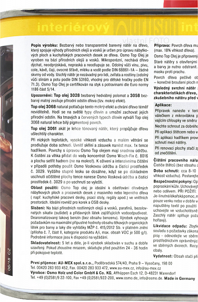 - Osmo Top olej je odolný vůči vínu, pivu, nápojům typu cola, káva, čaj, atd.