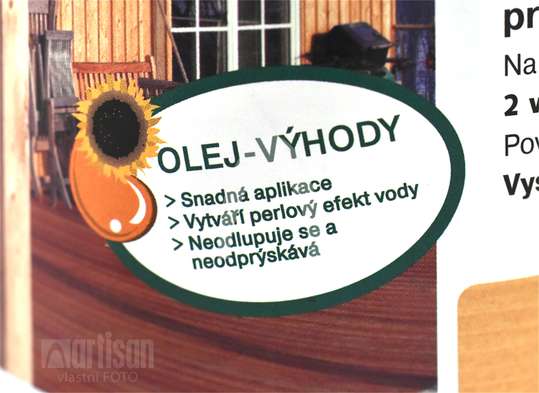 - Olej je snadno roztíratelný bez znatelných okrajů a nánosů a jednoduše ho přetřete bez obrušování.