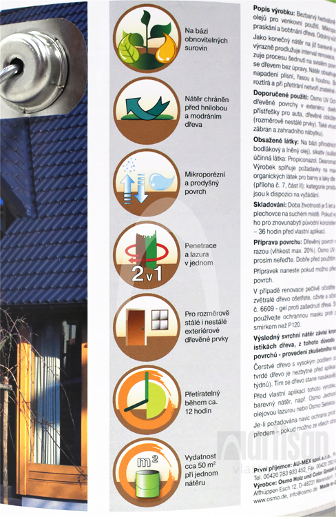 - Nátěr chrání před plísněmi, řasami a dřevokaznými houbami.