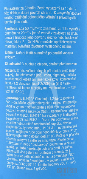 - Z 1 litru oleje natřete cca 20 m2/1 nátěr.